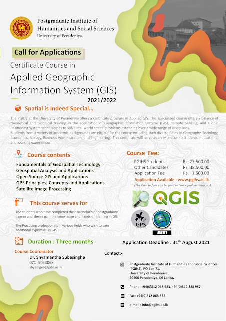 Applications Calling for the Certificate Course in Applied Geographic Information System (GIS) courses Conducted by University of Peradeniya – 2021