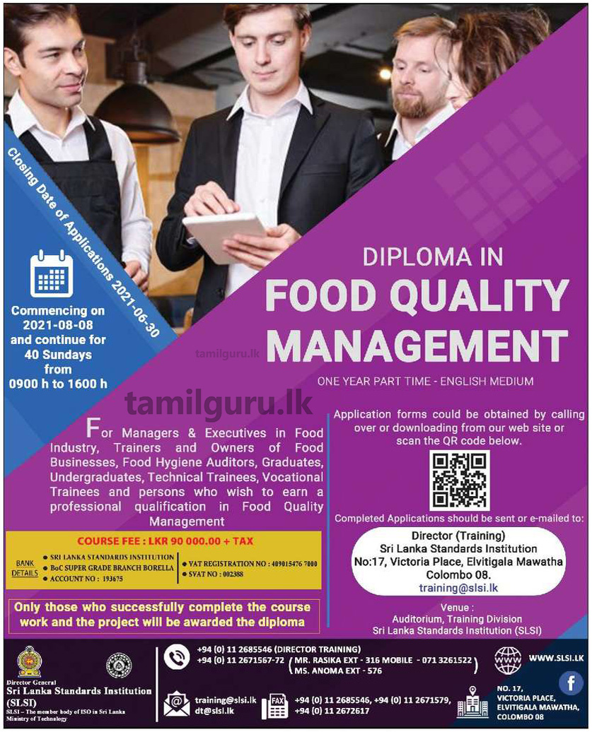 Diploma in Food Quality Management: Sri Lanka Standards Institute – 2021
