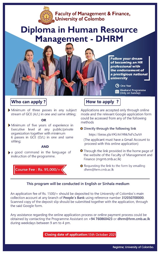 Diploma in Human Resource Management – 2021/2022 University of Colombo