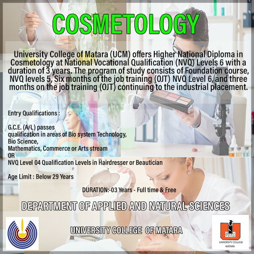 University College of Matara Calling Application for Higher Diploma in Cosmetology (NVQ Level-5/6) – 2021