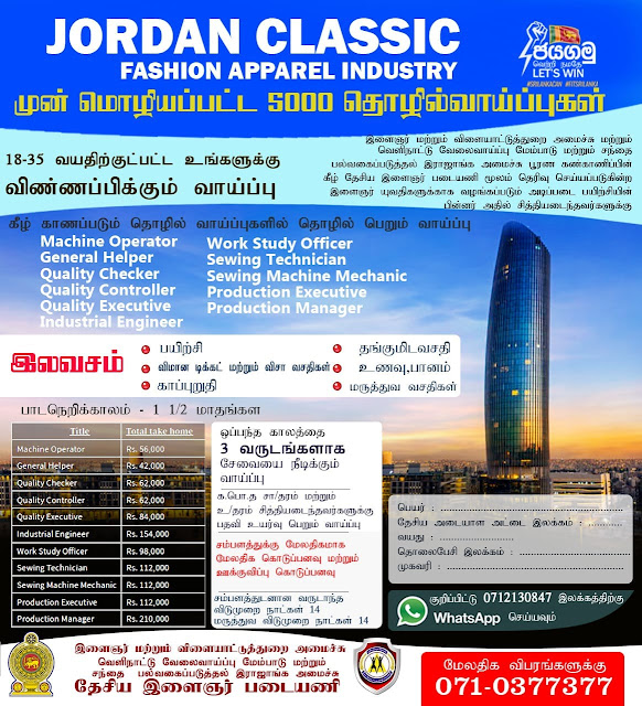 5000 Foreign Job Opportunities in Jordan Classic Fashion Apparel Industry