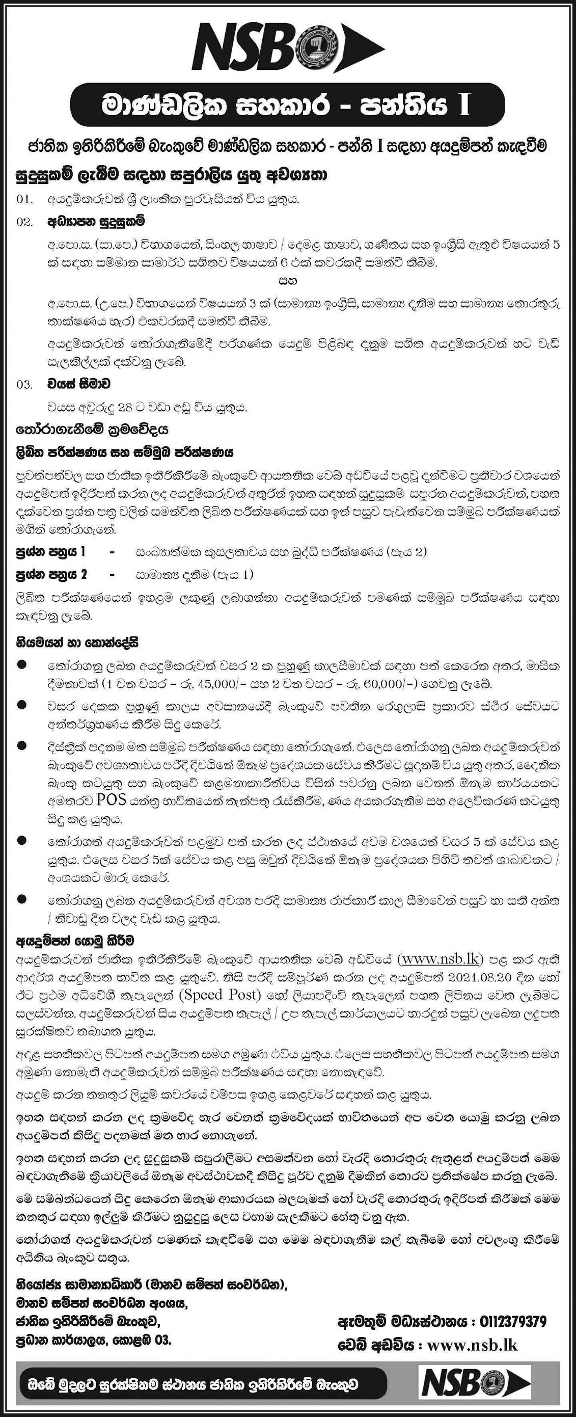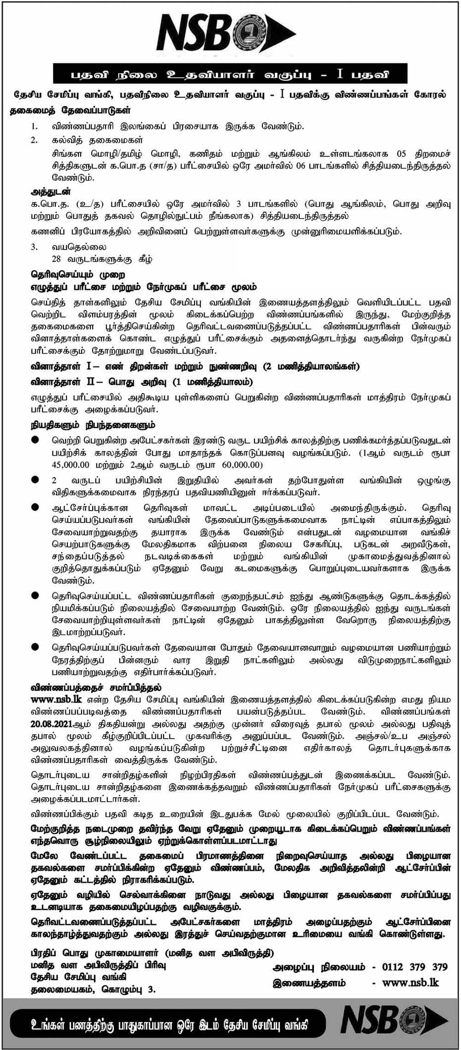 தேசிய சேமிப்பு வங்கியின் பதவிநிலை உதவியாளர் பதவிக்கு ஆட்சேர்ப்பு செய்தல்.