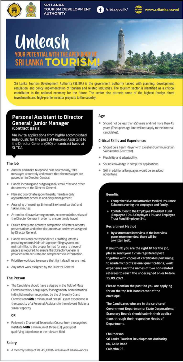 Sri Lanka Tourism Development Authority Vacancies – 2021