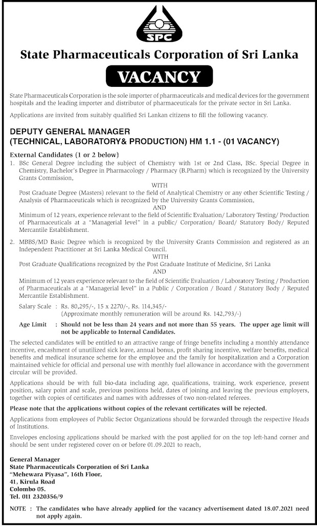 Calling Applications for the Deputy General Manager at State Pharmaceuticals Corporation