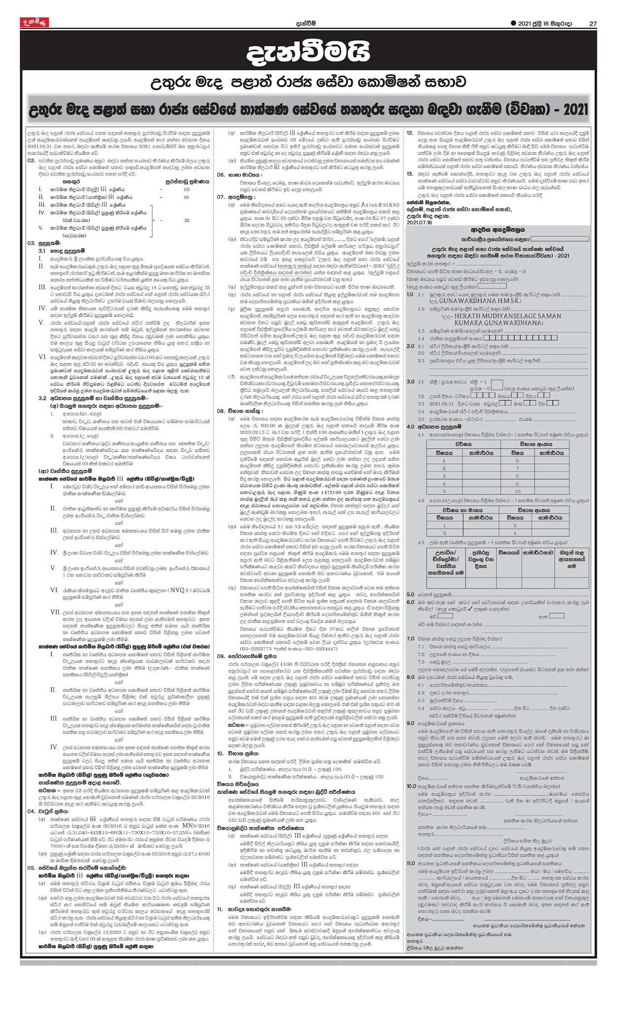 Open Competitive Examination for Recruitment to the Post of Technical Services in North Central Province – 2021.